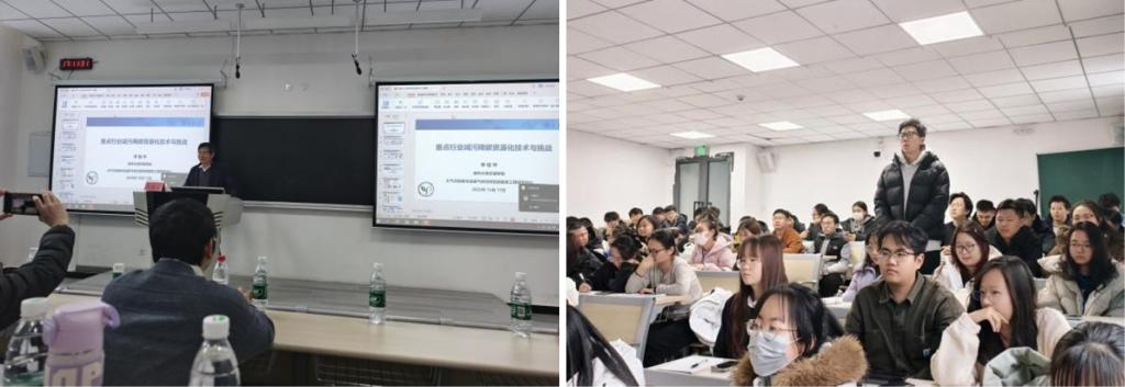 作为大气污染物与温室气体协同控制国家工程研究中心主任,李俊华院士长期深耕工业烟气污碳深度减排和资源化研究领域,在该领域有着深厚的学术造诣和丰富的实践经验。报告中,李院士以大气污染物与温室气体排放对生态环境的严峻影响为切入点,深刻阐释了在国家 “双碳” 战略背景下,深入打好污染防治攻坚战、推动重点行业绿色转型的紧迫性与战略意义。他系统梳理了科研团队在减污降碳协同增效理论创新、核心技术研发及工程应用方面的一系列突破性成果,详细介绍了烟气多污染物协同控制、污碳深度治理等关键技术如何为打赢蓝天保卫战、推动全国空气质量持续改善提供科技支撑,其讲解兼具前瞻性、专业性与实践指导性,为在场师生及行业从业者带来一场思想盛宴。